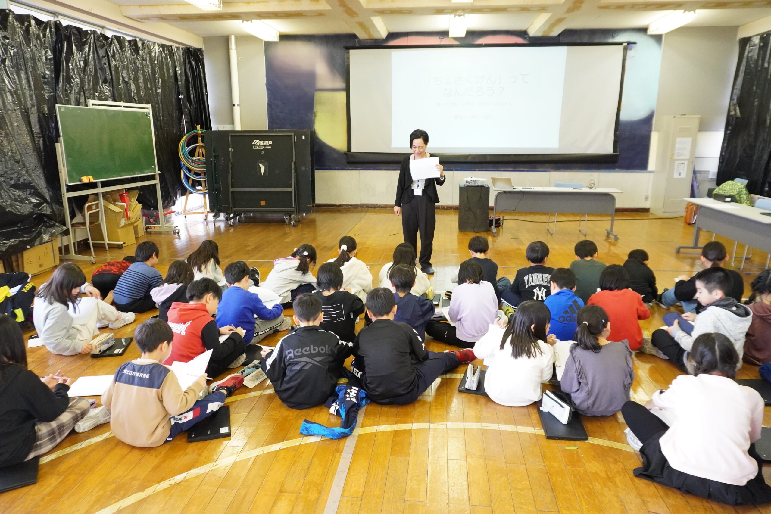 児童向けの講義は「『ちょさくけん』ってなに?」と題して45分間行われました。