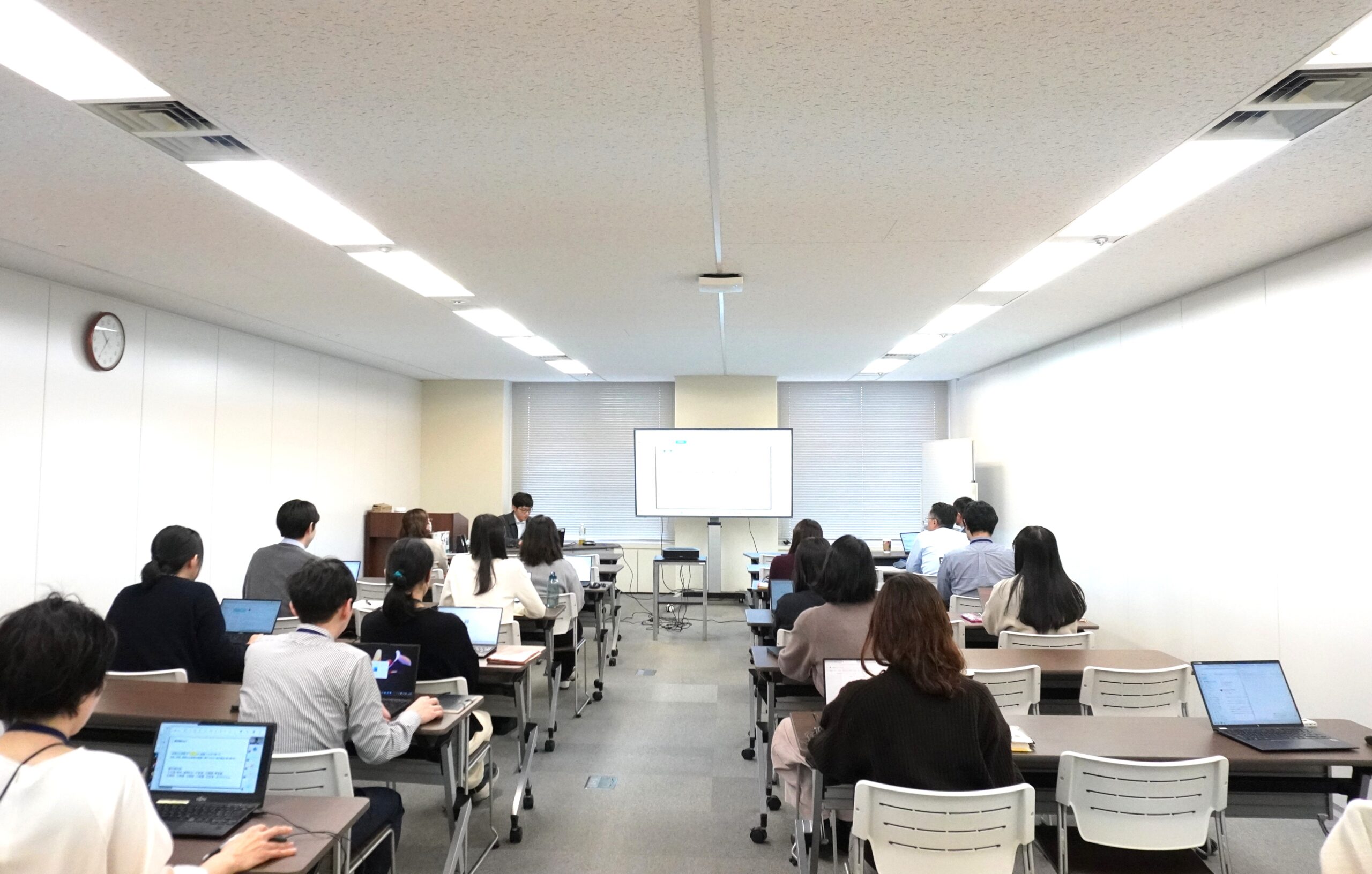 受講者は日本国際協力センターの職員の皆さんです。広報担当者を中心に、約20名が対面で受講し、さらに本部・支所から約80名がオンラインで参加しました。