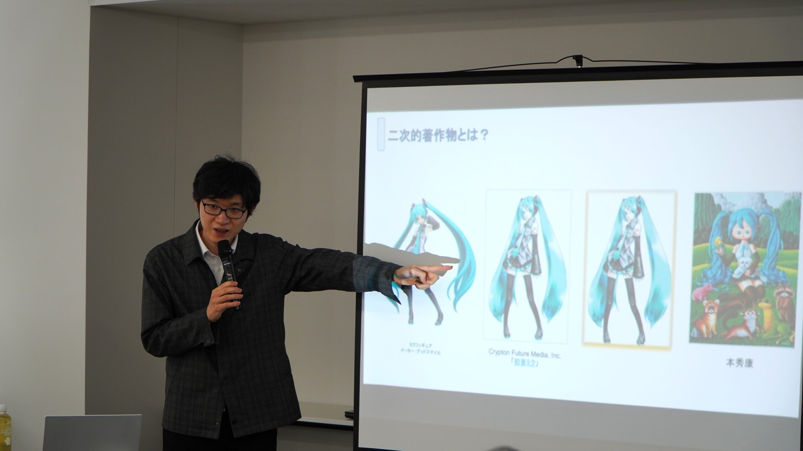 続いて、著作権法を理解するための基礎的な知識について解説。その際、受講者がイメージしやすいよう実在するロゴマークやキャラクターを挙げながら説明を進めます。